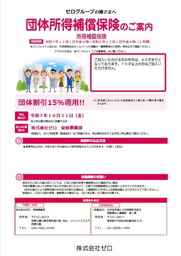 ★2025年度ゼログループ総合補償プラン 募集開始★