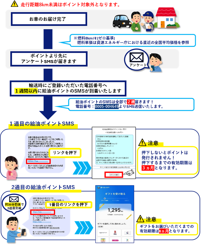 マイカー輸送で使用した燃料代はポイントでお支払いすることになりました!