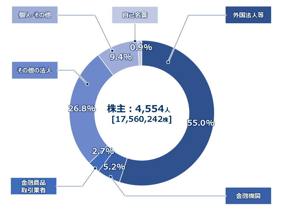 所有株式の割合は、自己株式を控除して算出し、小数点第3位以下を切り捨てて表示しております。